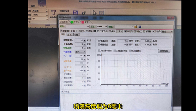 第一步關閉光閘,走邊框,走完邊框后,將光閘打開,然后按開始,如果在具體的切割過程中,發現加工的零件有毛刺或者不太理想,先按暫停鍵,之后機器就停止工作了。